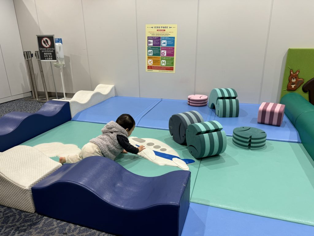 そして出発ロビーに辿り着いた後は、体力を削るべくキッズスペースで全力で遊ばせました。