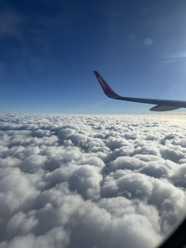 - 飛行機は最後列、peachのスペースシートオプションを利用して1列占拠